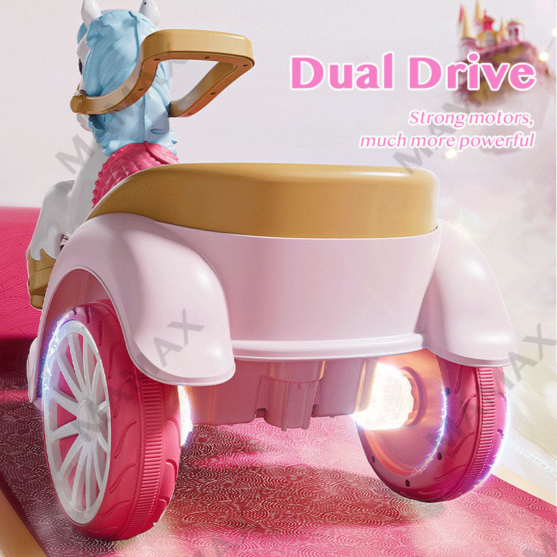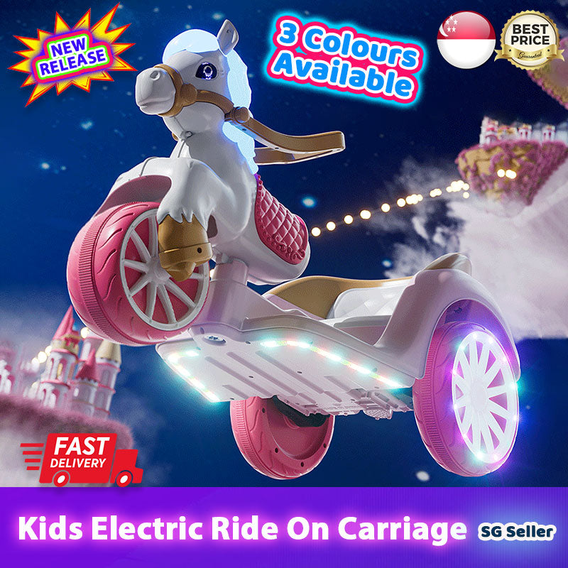 ★Super Cute Kids Electric Ride On Fairy Tale Carriage with Wheel Lights&Music&LED Lights★