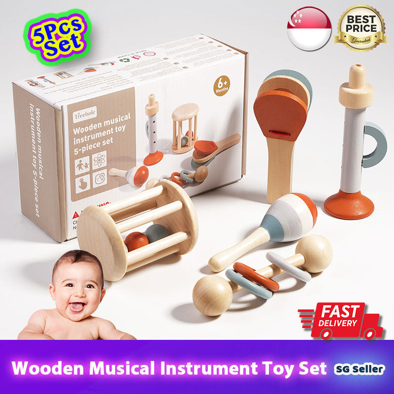 ★Baby Wooden Musical Instrument Montessori Toy 5-Piece Set★