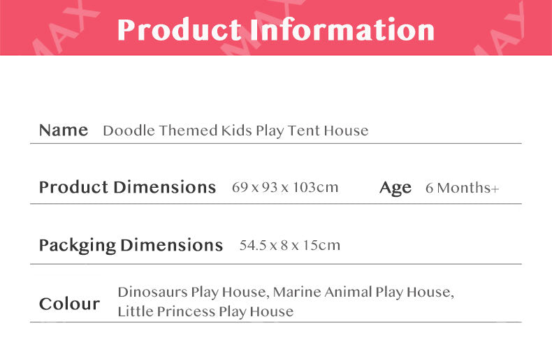 • 3 different themes play tent house available to choose, more choices to meet children's different needs, different tents can cultivate the development of children's eyesight, hearing, imagination, spatial sense and other needs, but also to inspire children's imagination of all kinds!
