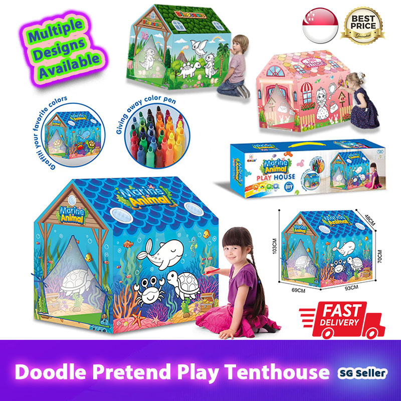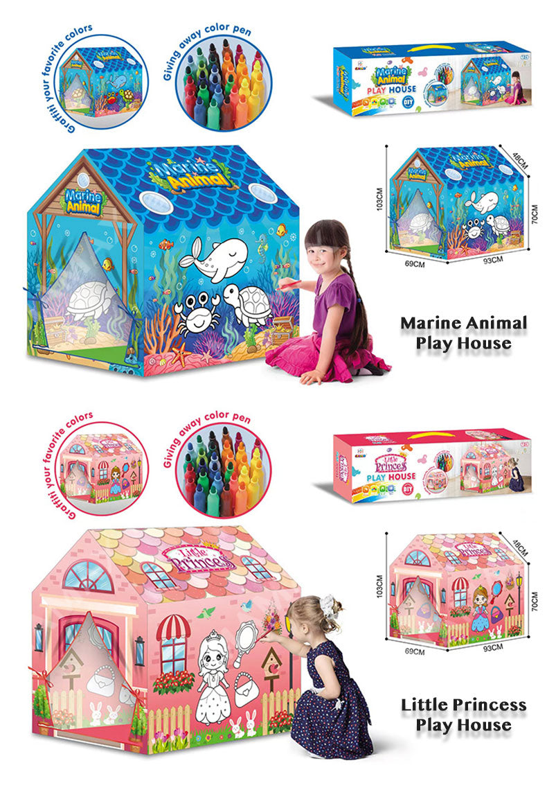 DIY Doodle/Graffie Themed Kids Pretend Play Tent House With Free Wahsable Watercolour Marker