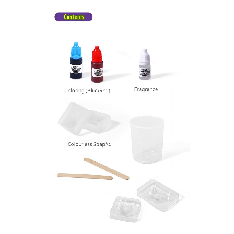 ★Contents: Colouring (Blue/Red), Fragrance, 2 Colourless Soap, 1 Cup, 2 Stiring Sticks, 2 Molds