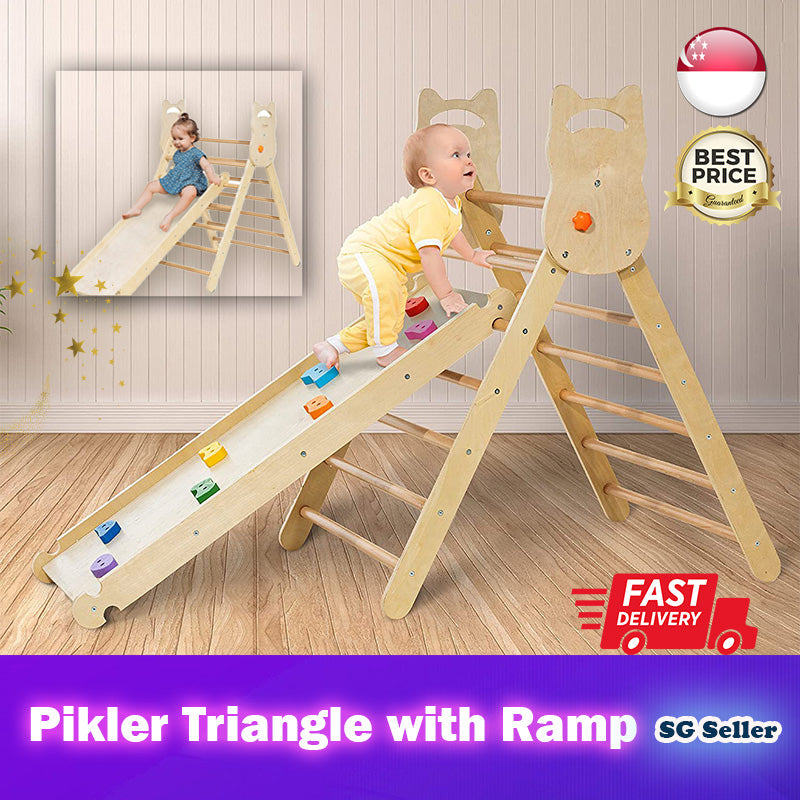 ★Montessori Rainbow Foldable Climbing Pikler Triangle with Ramp★