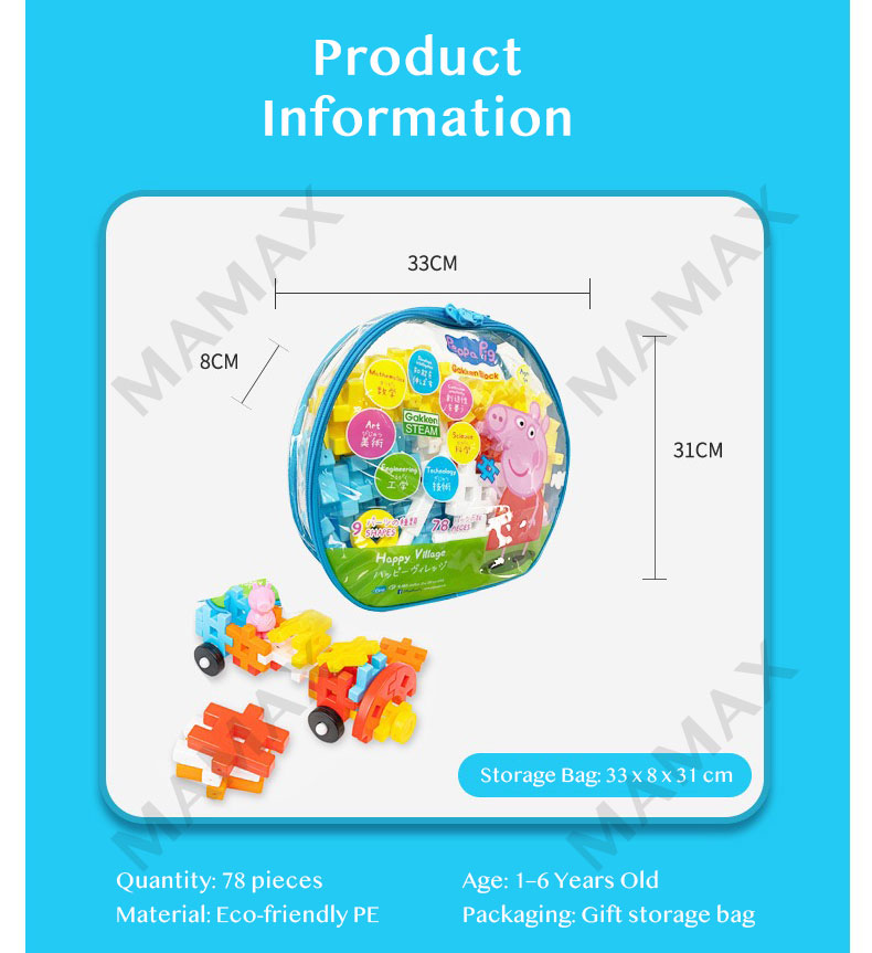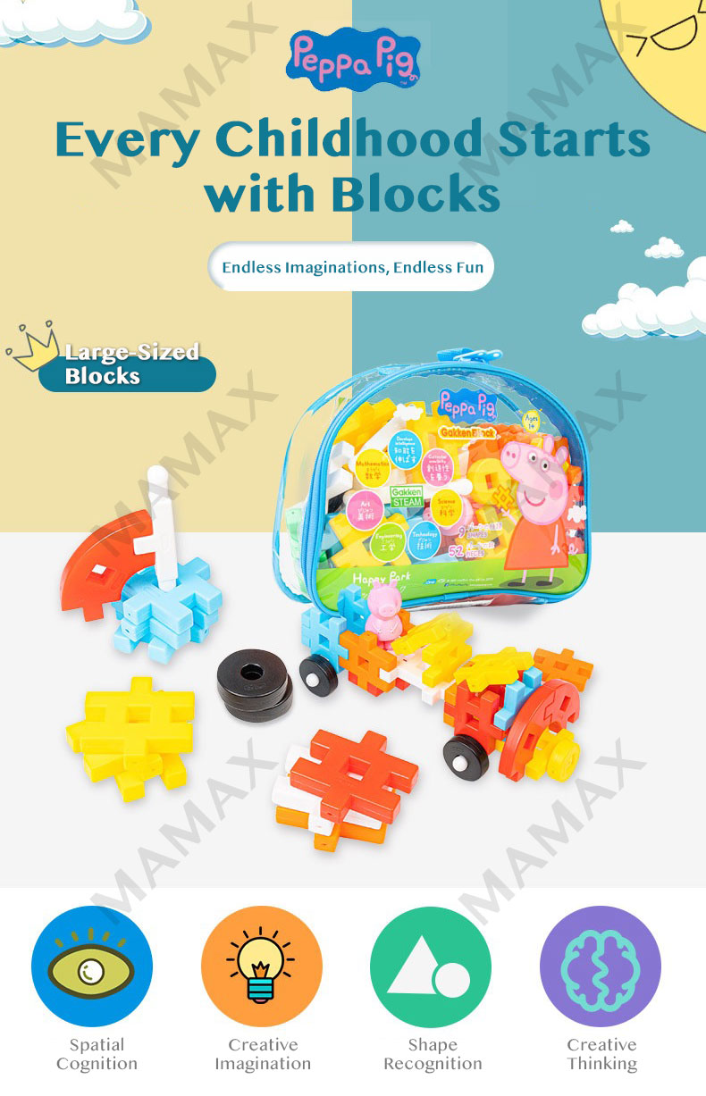 ★Toddler 52Pcs/78Pcs Peppa Pig Large Size Gakken Block Set With Storage Gift Bag★