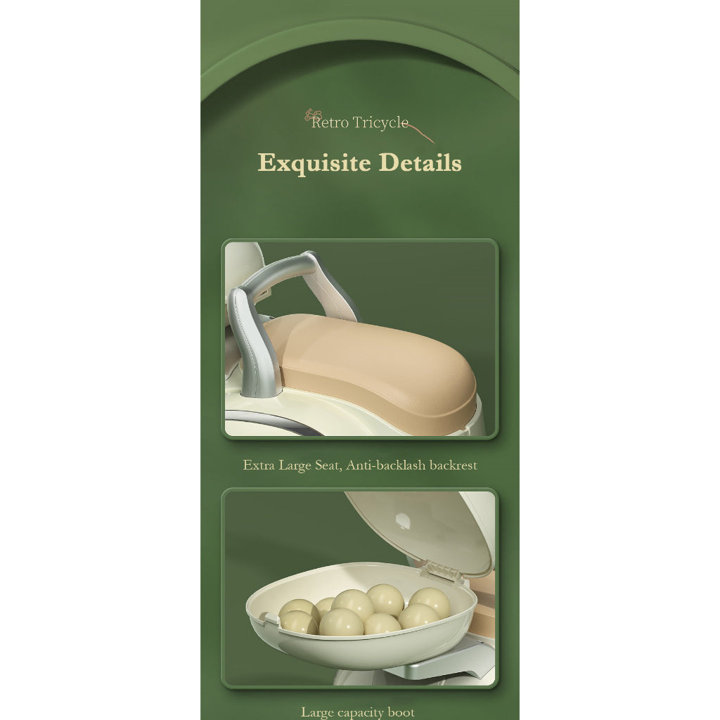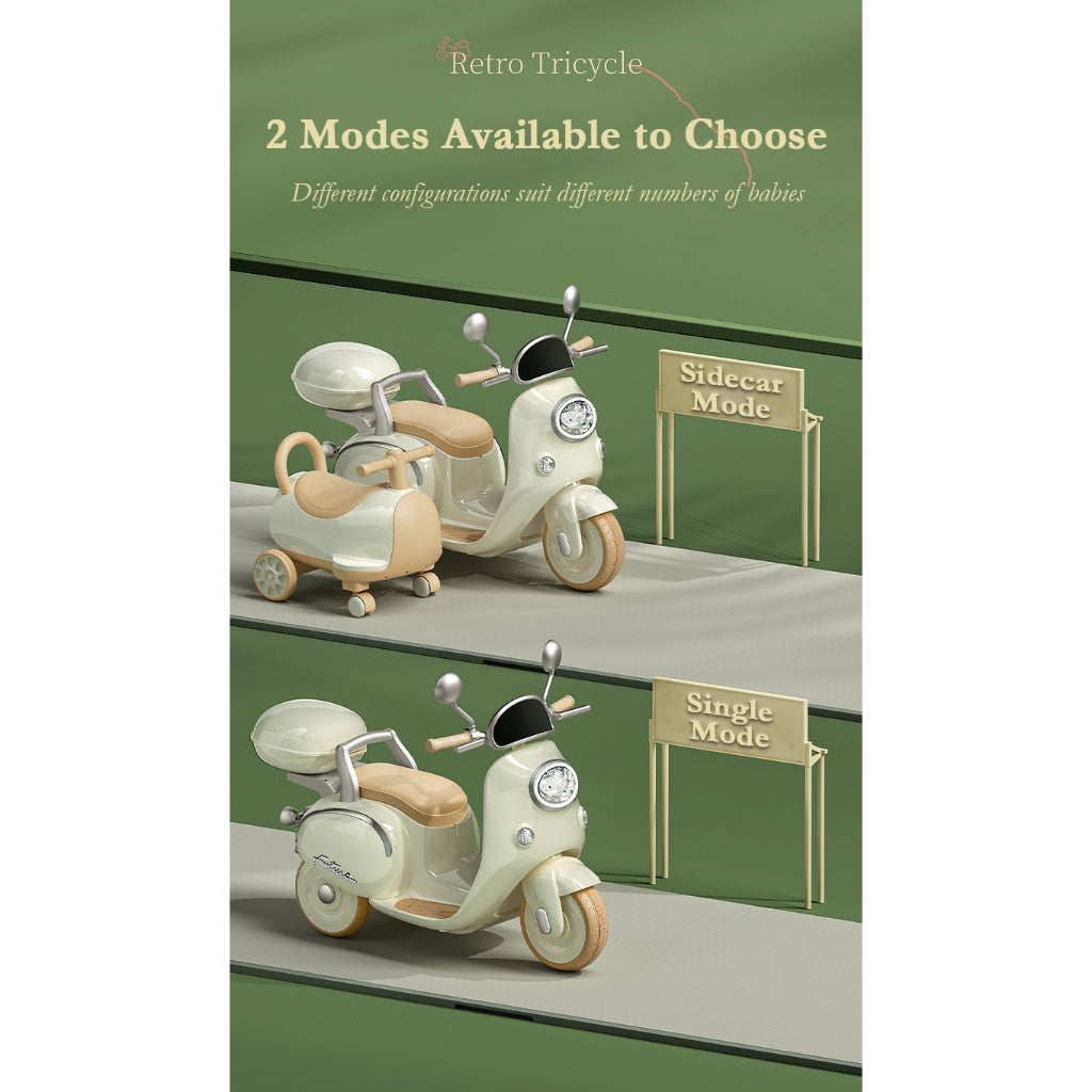 Retro Electric Kids Toy Tricycle with Sidecar