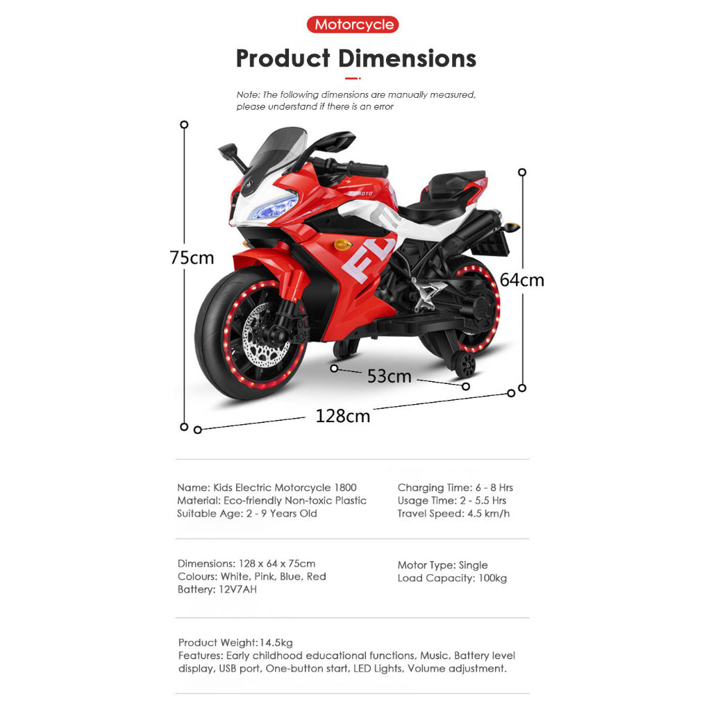 Super Large Kids 1800 Electric Toy Motorcycle