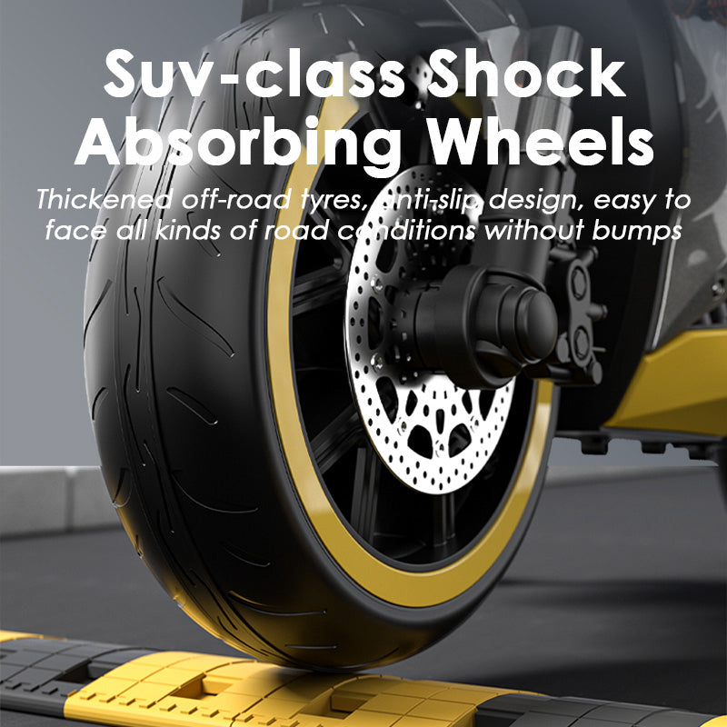 ★SUV-class shock absorbing wheels, thickened off-road tyres, anti-slip design, easy to face all kinds of road conditions without bumps