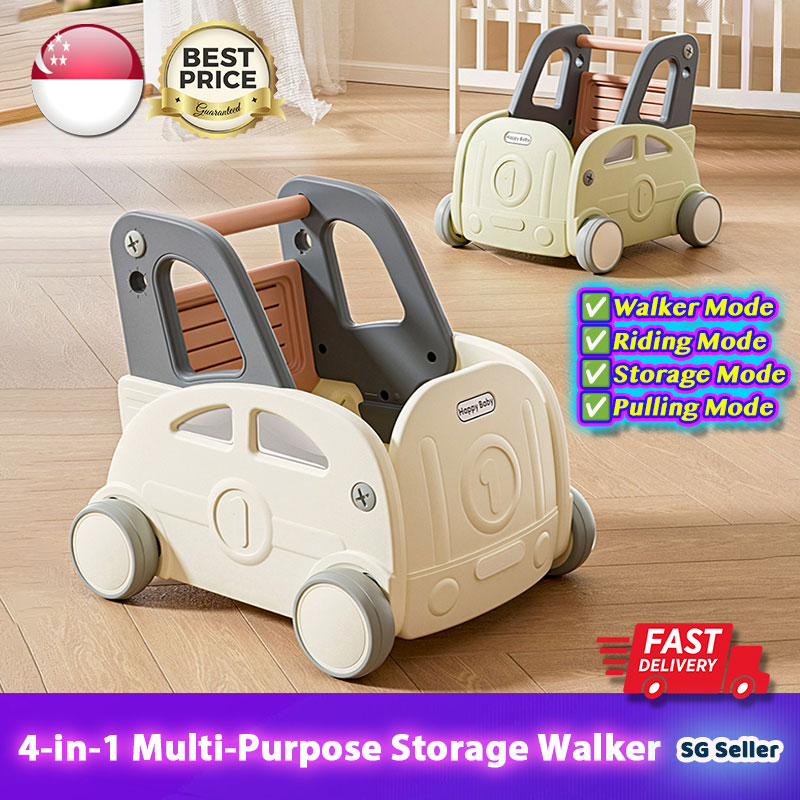 ★4-in-1 Multi-Purpose Baby Storage Walker/Push Cart With Pulling Rope&Adjustable Handle Bar★