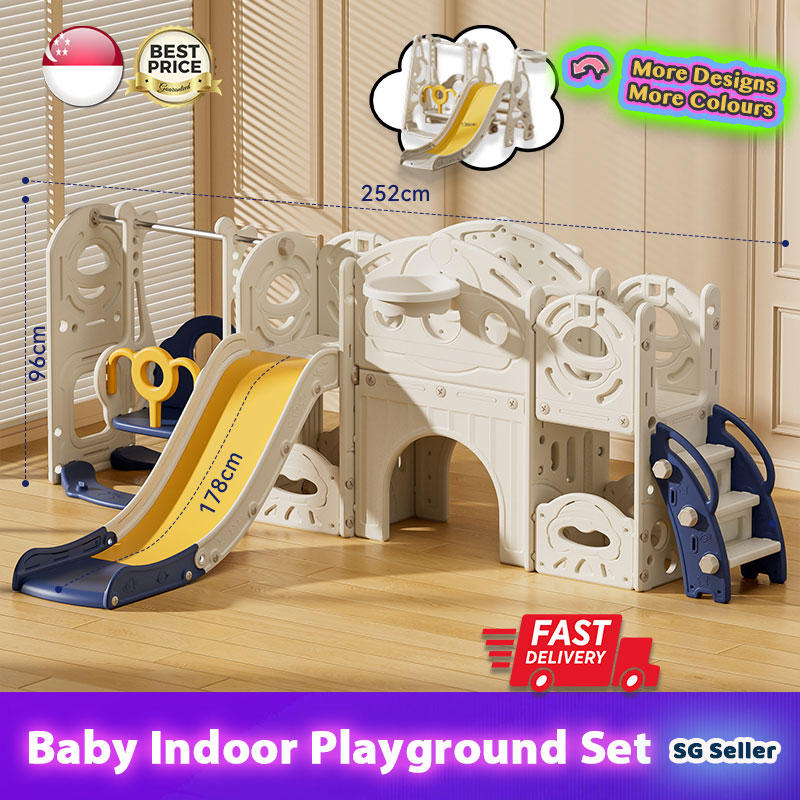 Children's Slide+Swing+Basketball Hook✅Blue/Grey Combo✅Family Combination Playground Set✅