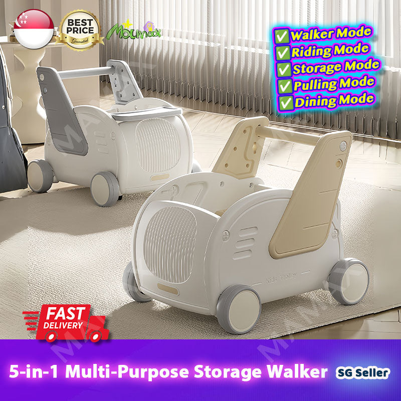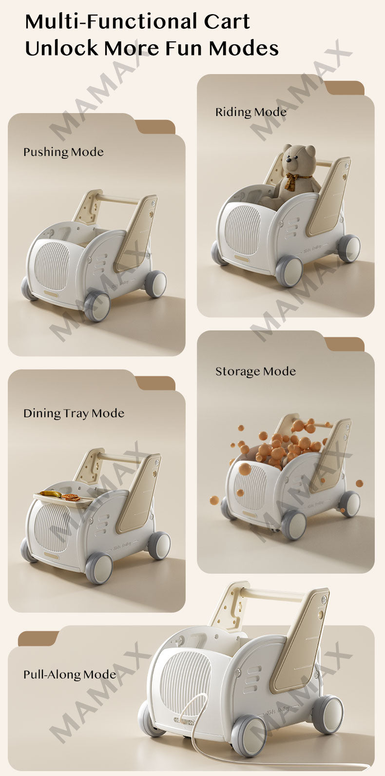 ★5-in-1 Multi-Purpose Baby Storage Walker/Push Cart With Pulling Rope&Adjustable Handle Bar★