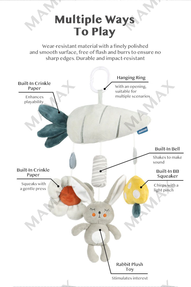 ✅Diverse sound-making components, featuring a build-in BB sound and crinkly paper wind chime to engage the baby, helping them explore and learn about the world around them
