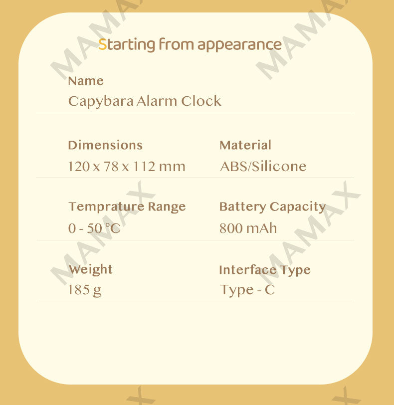 - Capybara-shaped design. The cutest alarm clock in the world!