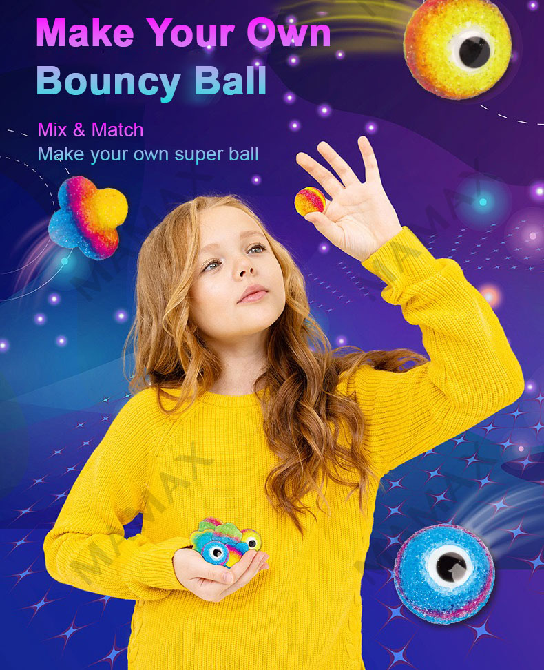 • This DIY science experiment kit helps develop creativity, curiosity, and problem-solving skills. Children can mix different colors, add glow powder, and decorate their bouncy balls with fun eye details, making every ball unique. It is a perfect balance of learning and play.