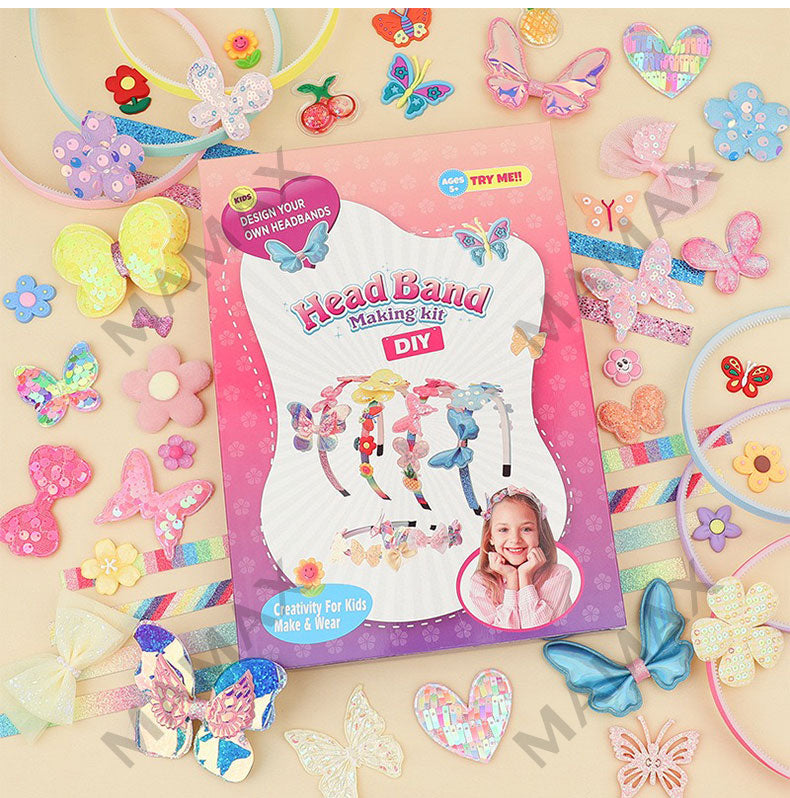 DIY Kids Head Band Making Kit Includes 6 Head Bands 36 Accessories★For Age 5+