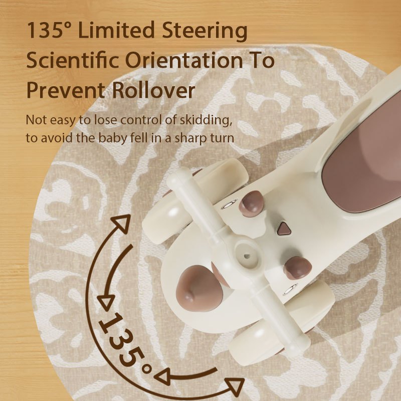 ●防侧翻,135°限位转向科学定位,防止侧翻,不易失控打滑,避免宝宝急转弯摔倒