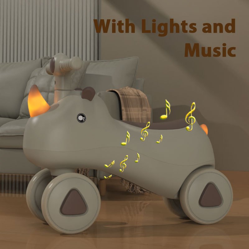 犀牛宝宝四轮骑乘推车玩具带音乐和灯光