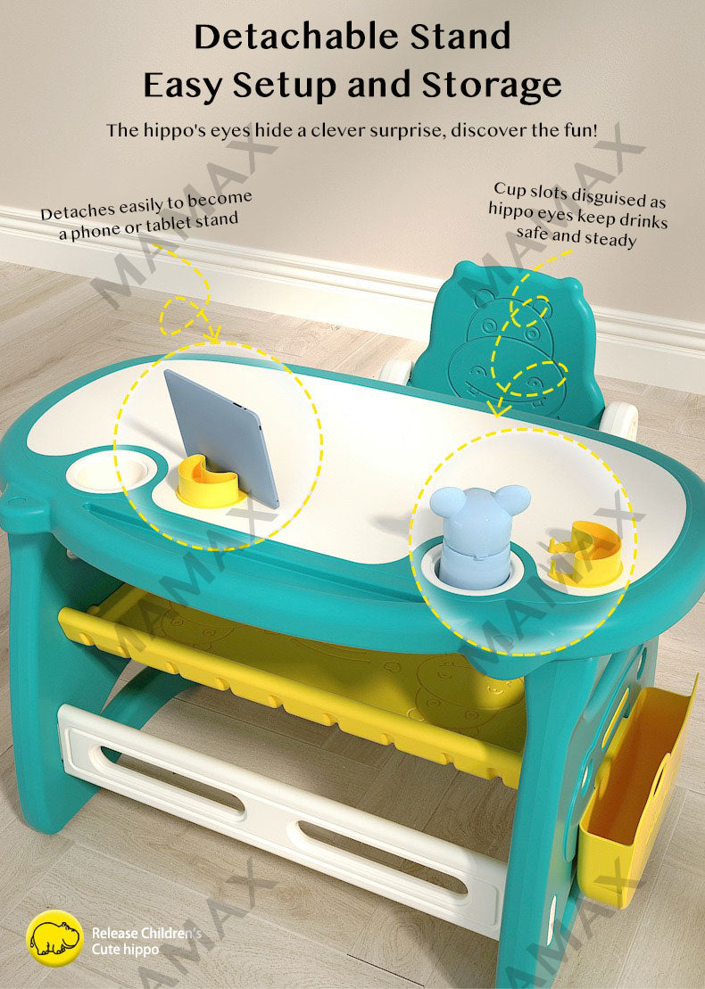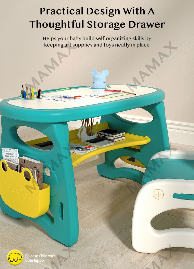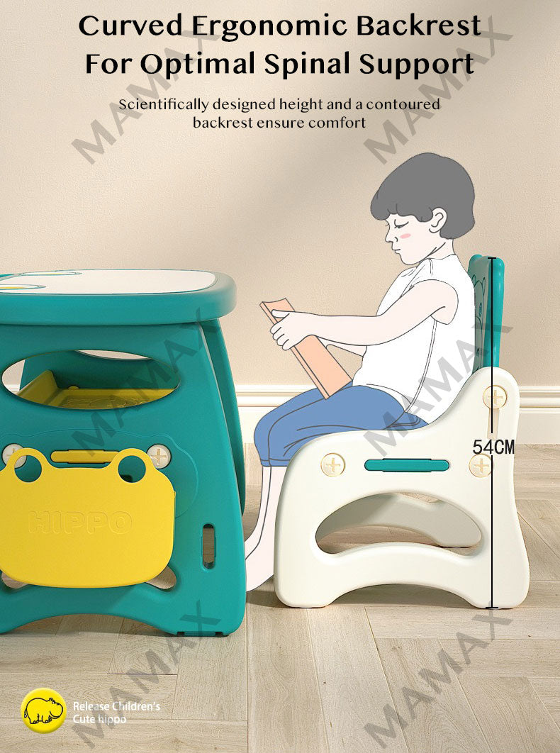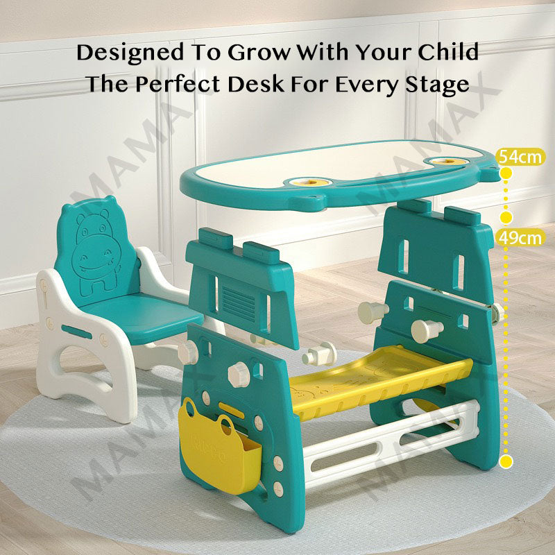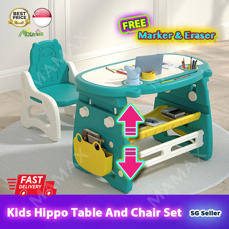 ★Kids Cute Hippo Multifunctional Adjustable Study Table + Chair Set With FREE Marker& Eraser★
