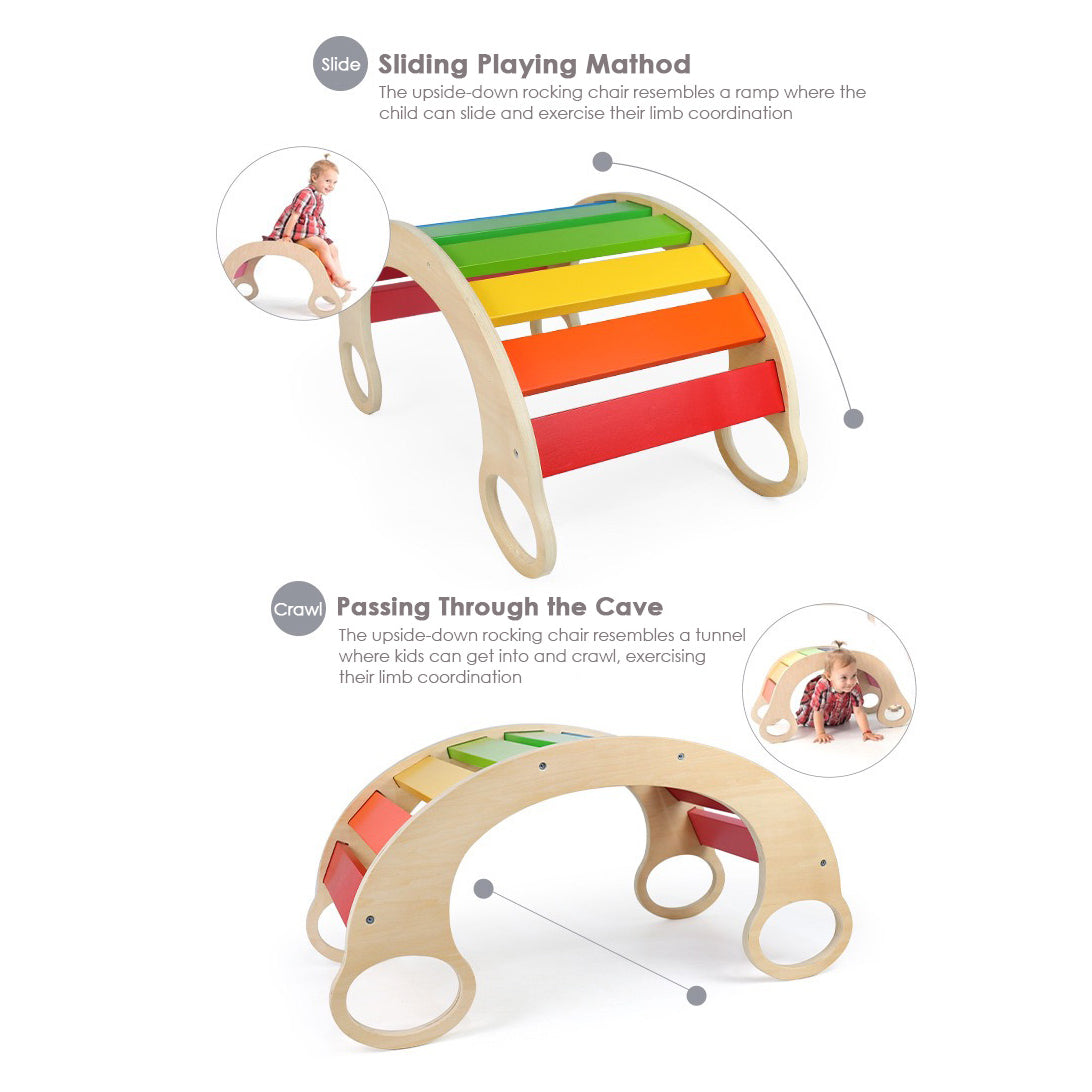 2、滑动,倒置摇椅形似斜坡,孩子可以滑动,锻炼肢体协调能力。