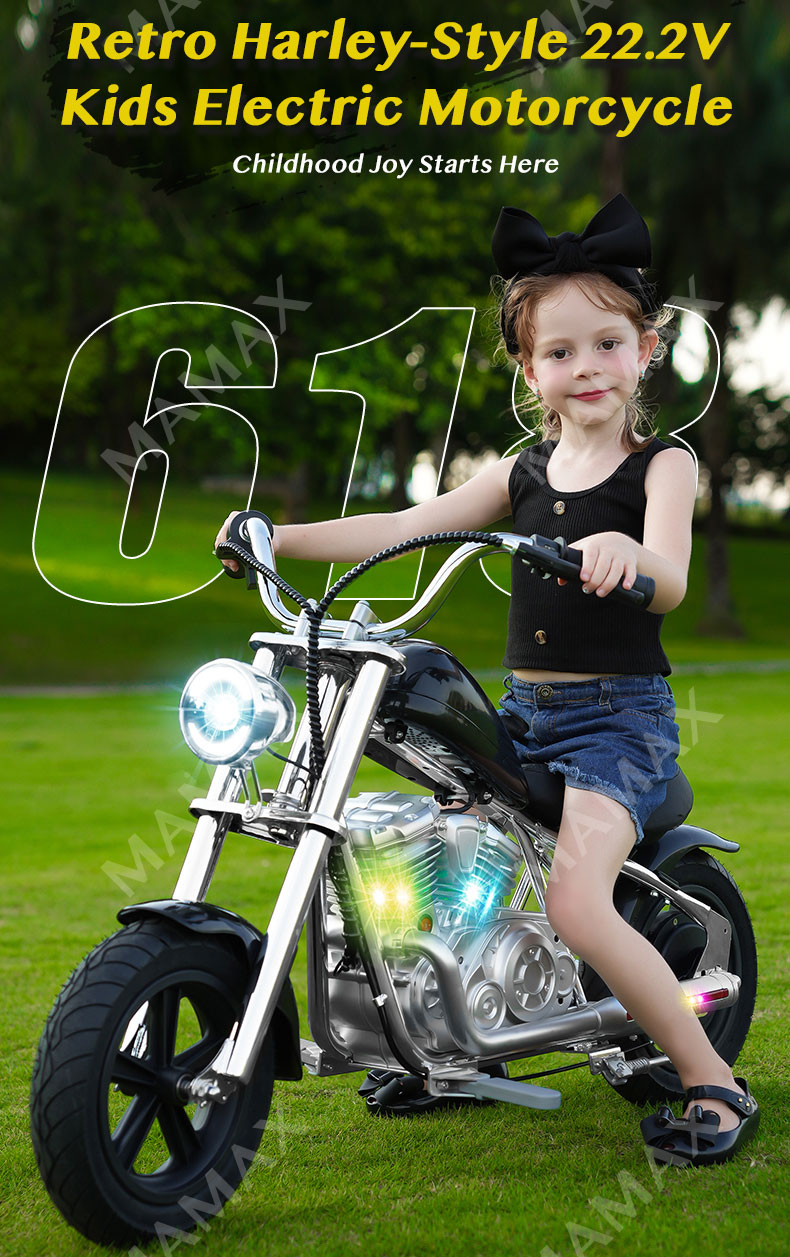 ★Premium Retro Harley-Style 22.2V 2-Wheel Kids Electric Motorcycle★