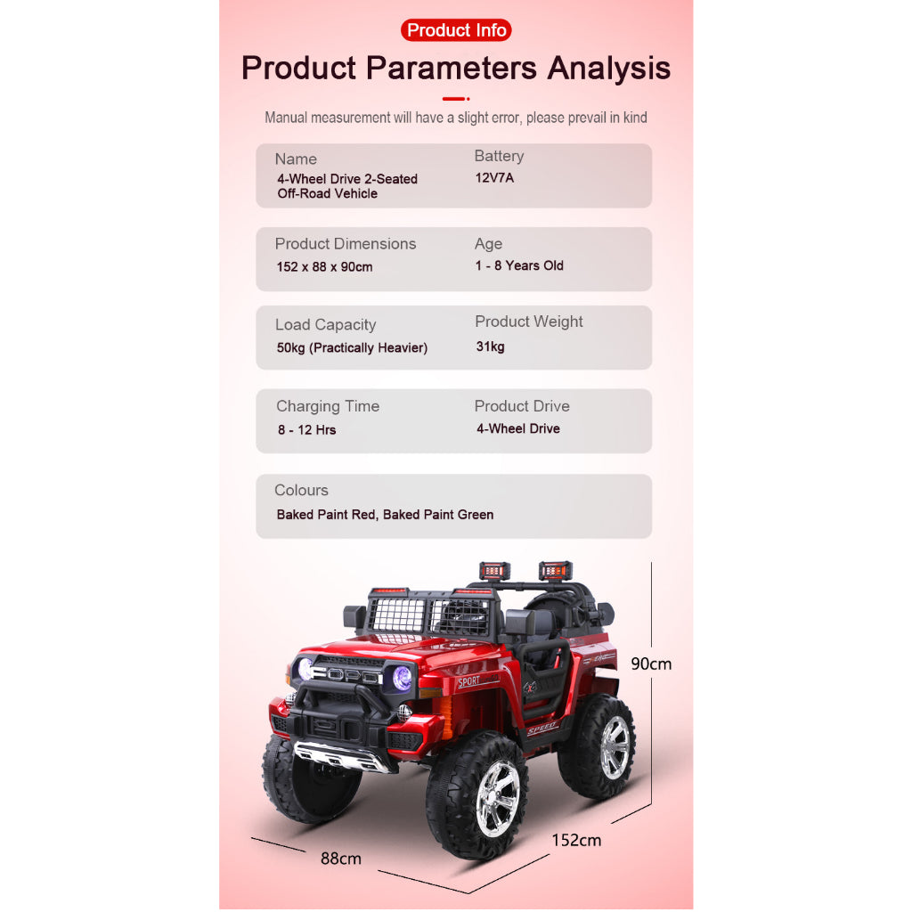 2 座 4 轮驱动越野儿童电动车,带遥控器